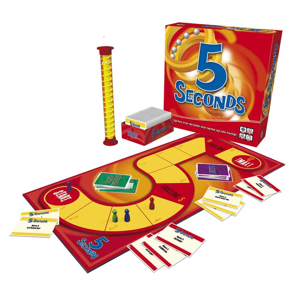 Et spil for hele familien, hvor det gælder om at tænke og tale hurtigt! Det er let at nævne 3 ting du børster… Eller 3 desserter… Men kan du gøre det under pres på 5 sekunder, mens de andre spillere stirrer og venter på, at du bliver forvirret? Tiden er ikke på din side, så sig hvad du tænker, inden tiden løber ud på den unikke spiral-timer. Med dette spil er der garanteret flere timers sjov!