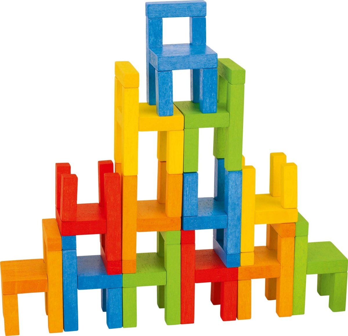 Du og en af dine venner konkurrerer her om hvem der kan bygge det højeste tørn af små farverige træstole.