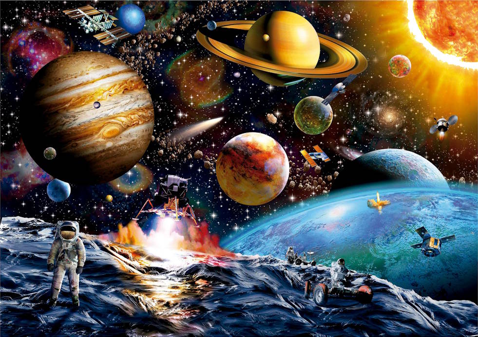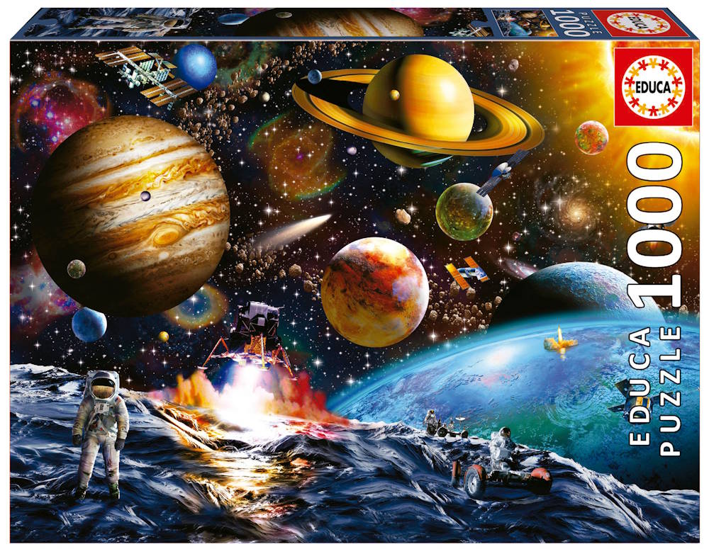 Tag på en spændende rejse ud i universet med dette imponerende puslespil fra Educa. Med et unikt motiv af den anerkendte kunstner Adrian Chesterman, vil du samle en scene, hvor en astronaut udforsker en fremmed planet med en spektakulær udsigt til Jorden, Saturn og de mange satellitter, der svæver i rummet.