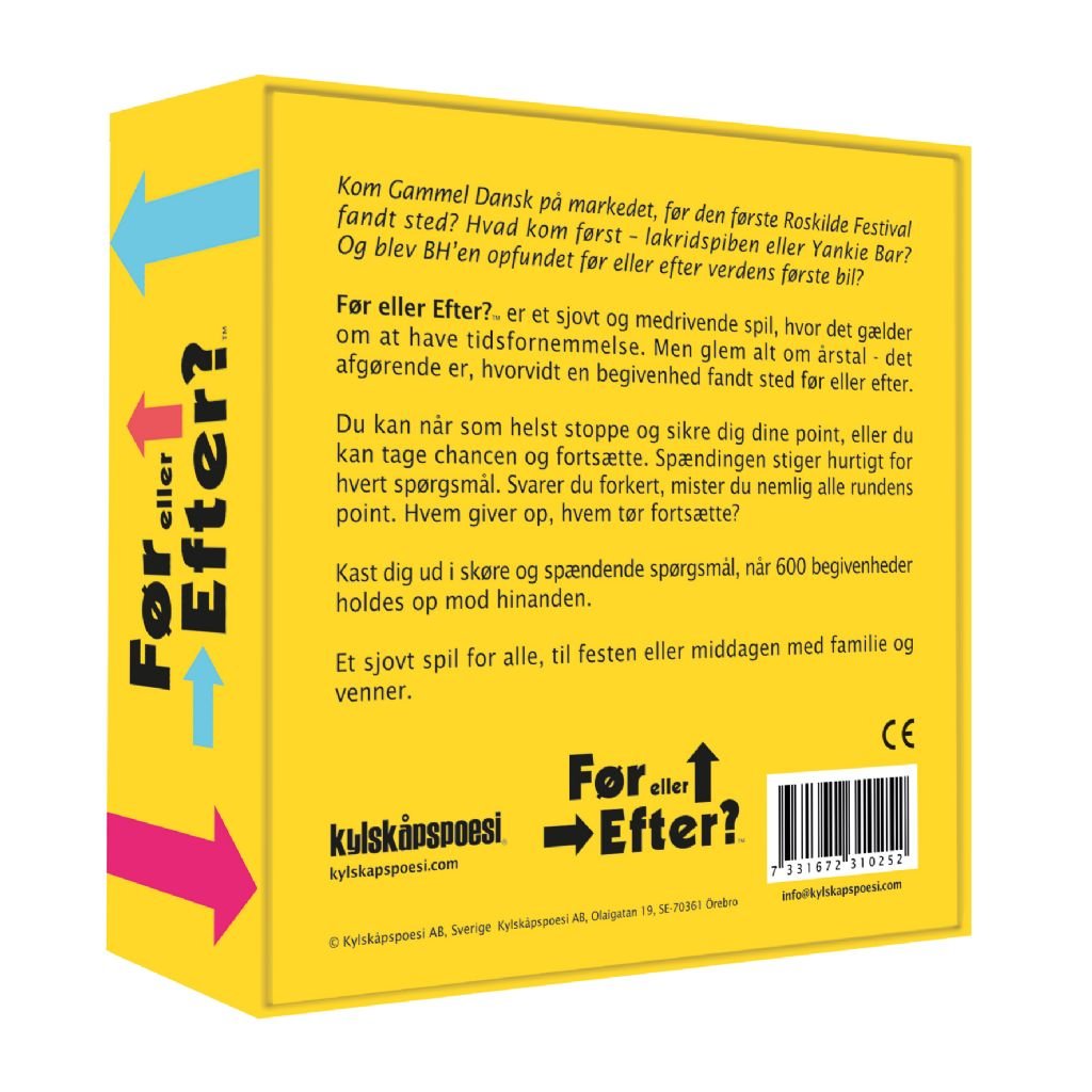 Sjovt quizspil hvor 600 begivenheder sættes op mod hinanden og i skal gætte hvilken af to der kom først. Et spil hvor tidsfornemmelsen er i høj kurs, og hvor den brede paratviden bliver sat på prøve.