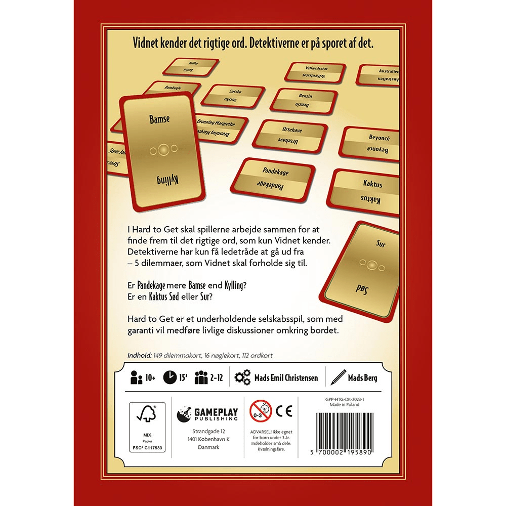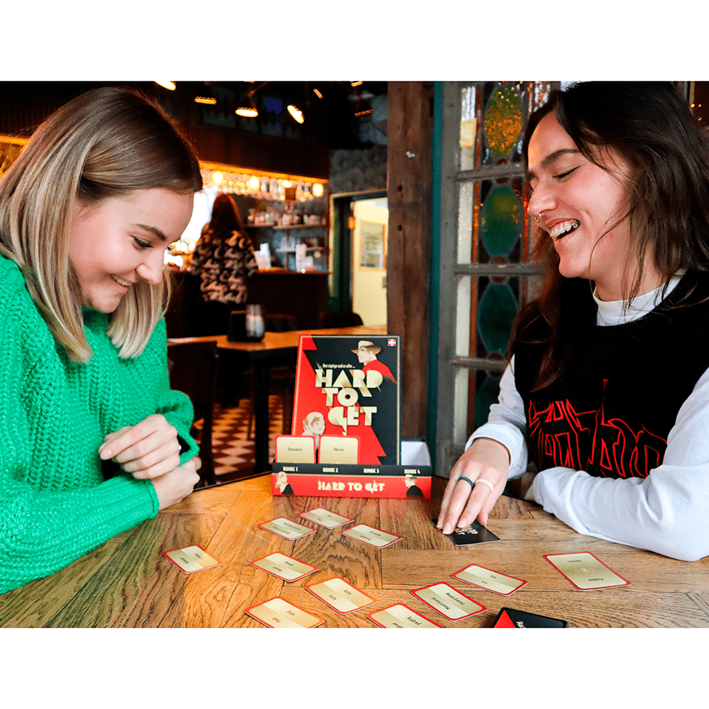 Hard to Get er et underholdende selskabsspil, som med garanti vil medføre livlige diskussioner omkring bordet.