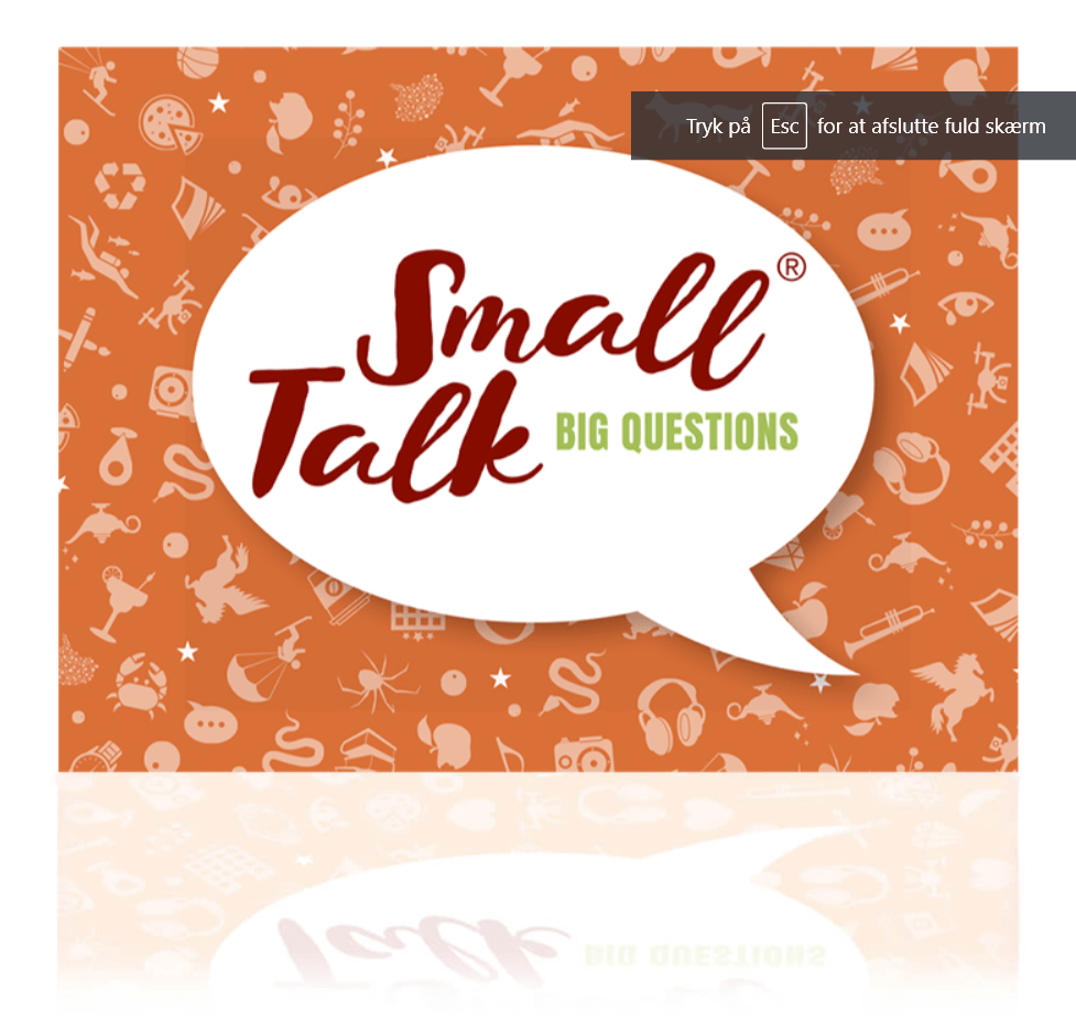 Small Talk – Big Questions kan spilles med det samme – bare læs kortene op for dine venner og familie. I kan også spille på tid – hvor mange spørgsmål kan I nå på 10 minutter eller hvor mange spørgsmål kan hver enkelt svare på, på 1 minut. I kan også tage et spørgsmål om dagen – fx når I spiser aftensmad. Brug det til fødselsdag, mandelgave, i legegrupper/skolen, på ferie eller til familiekomsammen.