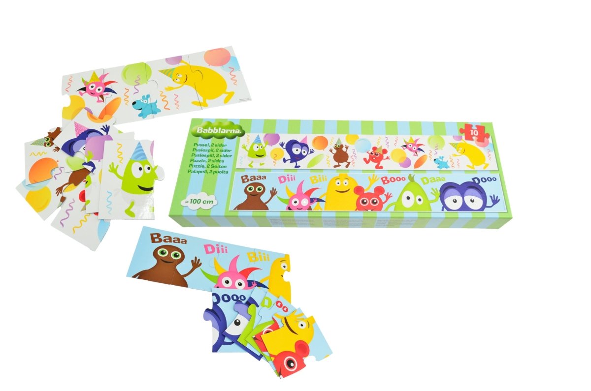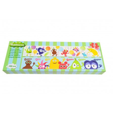 1 meter langt panorama puslespil med Babblarna motiv. 10 brikker.