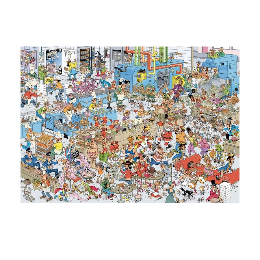I dette specifikke motiv, "Vanvid i Bageriet", er der fuld gang i ovnene. Bageriet summer af aktivitet med bagning, salg og servering af brød og kager. Dette motiv er en del af Jan van Haasteren-serien, kendt for sine detaljerige og humorfyldte illustrationer, der bringer smil frem hos puslespilsentusiaster i alle aldre.
