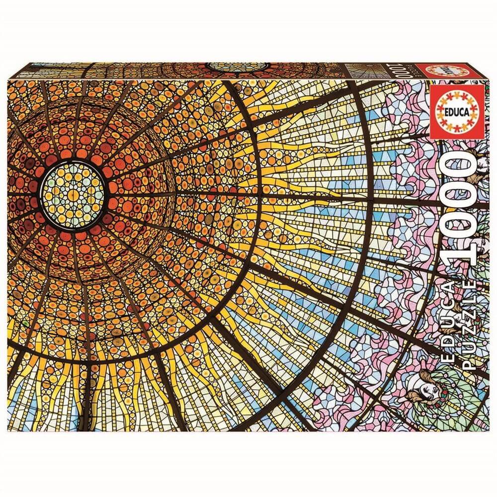 Tag et visuelt kig opad med dette puslespil, der viser den spektakulære glaskuppel i Barcelonas berømte koncerthal. Denne arkitektoniske perle, som er en del af UNESCOs verdensarvsliste, byder på en enestående blanding af kunst og lys, fanget i farverigt glas og udsøgte detaljer.