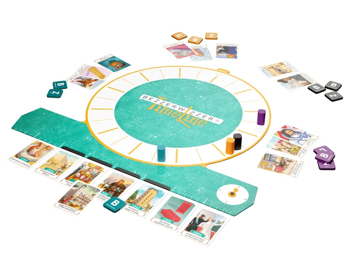 I Bezzerwizzer Timeline skal I placere kort med historiske begivenheder i den rigtige kronologiske rækkefølge. Du kommer på en rejse gennem historien, hvor du skal bruge viden og taktik for at finde ud af, om dynamitten virkelig blev opfundet efter tyggegummiet, men før det flettede julehjerte. Undervejs kan du få ekstra point, hvis du tror, at en modstander har lagt en begivenhed forkert, eller du kan stjæle deres yndlingsbegivenheder – men husk, at de kan gøre det samme mod dig!