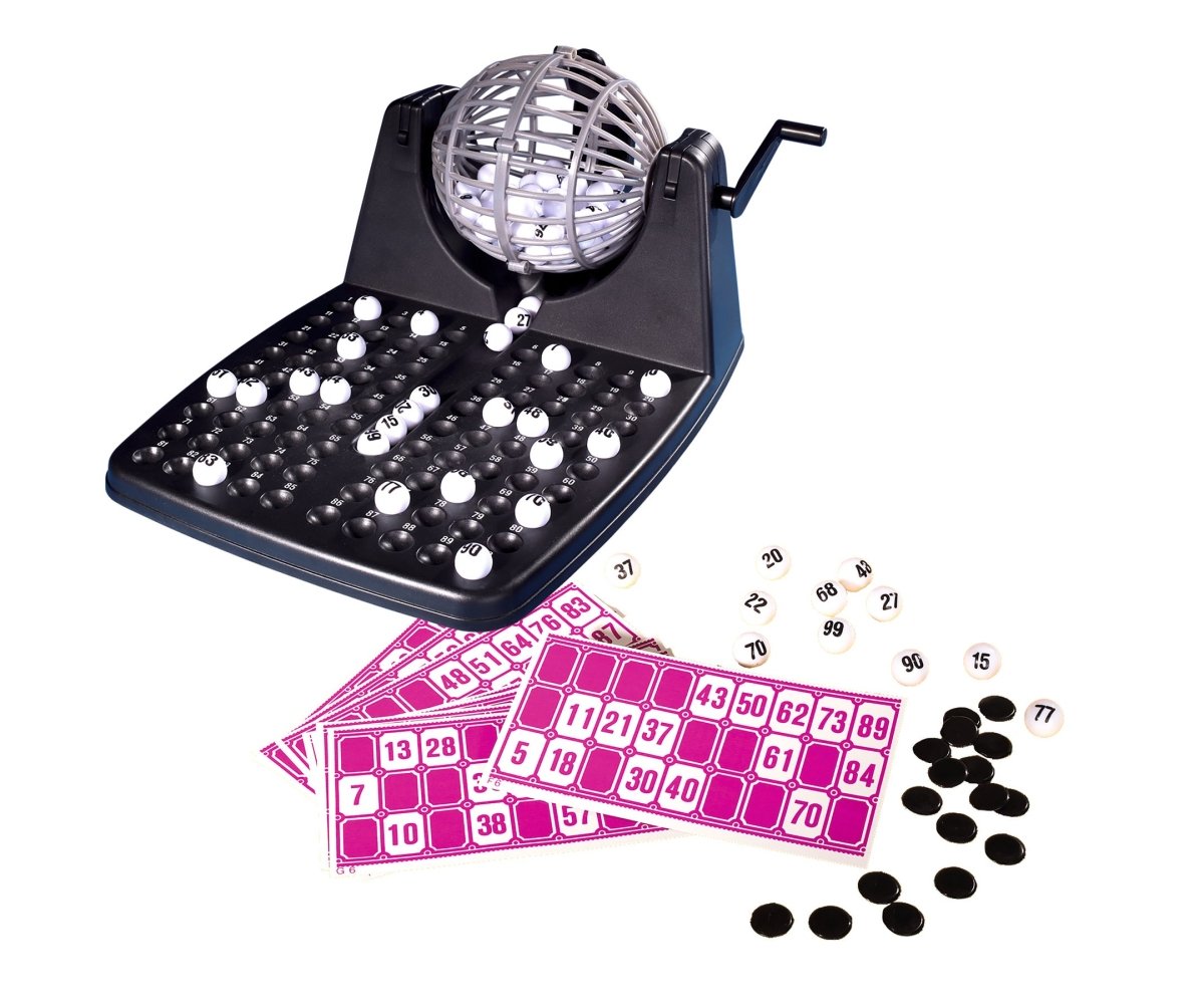 Spillet indeholder tromle der kan rumme de 90 bolde med tal, samt 12 plader.