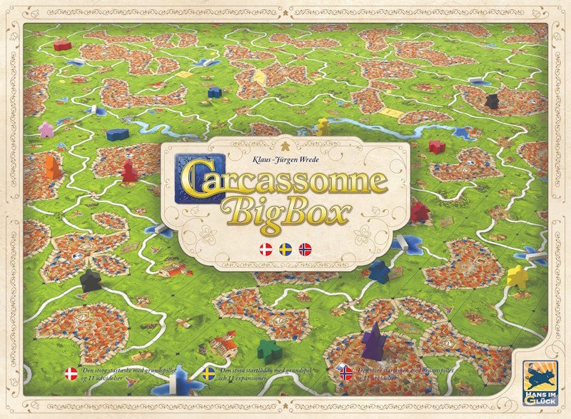 Carcassonne Big Box 2025 giver dig en komplet, moderne og opdateret Carcassonne-samling, der holder i mange år og kan spilles igen og igen.