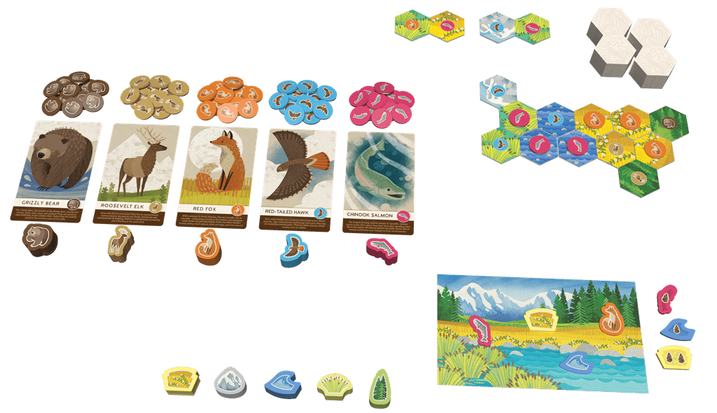Tag med på eventyr i den vilde natur i det nordvestlige USA med Cascadia Junior – en børnevenlig udgave af det prisvindende brætspil Cascadia. Her bygger spillerne deres egne panoramakort ved at placere levesteder og dyr på den smartest mulige måde. Jo bedre du matcher bjørne, elge, ræve, høge og laks med deres naturlige omgivelser, desto flere point scorer du.