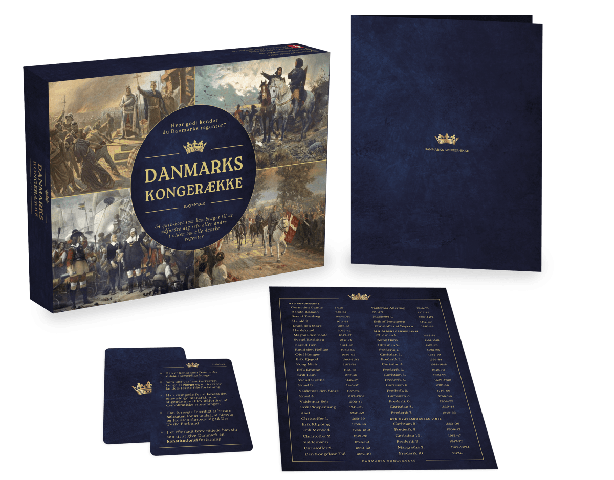 Hvor godt kender du historiens danske monarker? I Danmarkskongerækken dyster du og dine medspillere om at gætte, hvilken konge eller dronning skjuler sig på kortet — baseret på fem ledetråde.