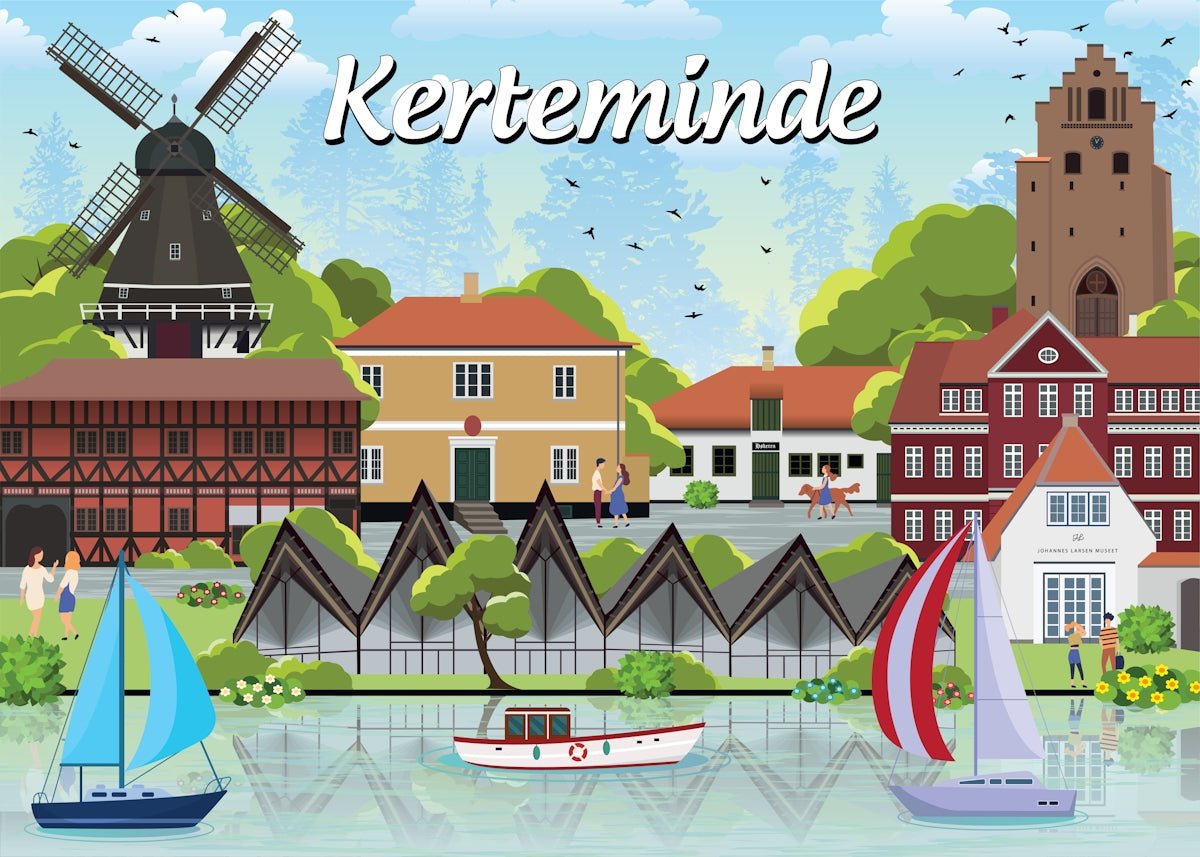 I vores puslespilsserie indfanges Kertemindes maritime atmosfære og kunstneriske flair, med brikker, der sammen udgør et billede af byens hyggelige charme og kulturelle rigdom. Inde i æsken finder du en kompakt plakat, der viser puslespillets design, hvilket kan være en hjælp, når du samler brikkerne.