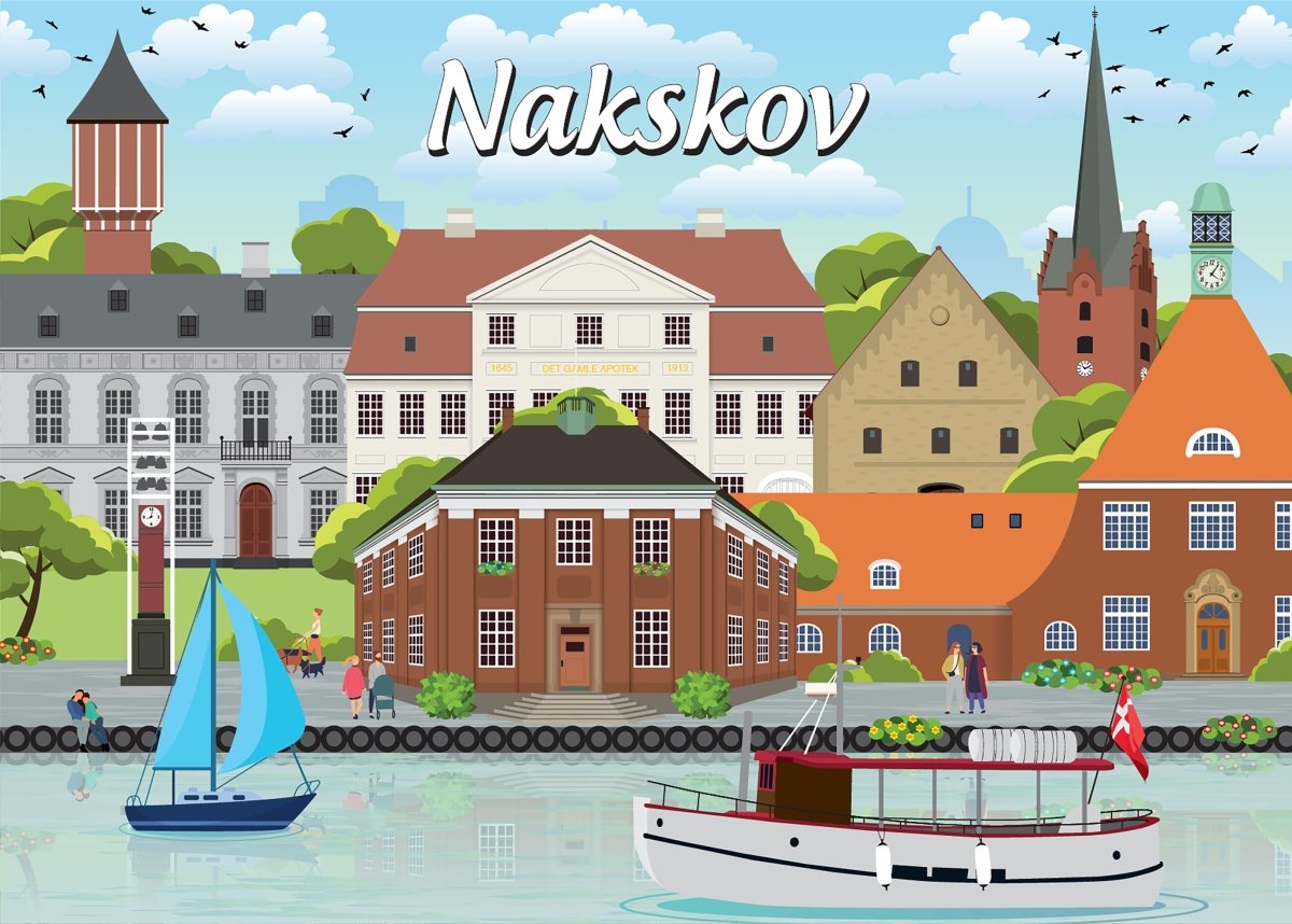 I vores puslespilsserie indfanges Nakskovs historiske charme og fjordens naturlige skønhed, med brikker, der tilsammen danner et billede af byens kulturarv og landskabelige idyl. Inde i æsken finder du en kompakt plakat, der viser puslespillets design, hvilket kan være en hjælp, når du samler brikkerne.