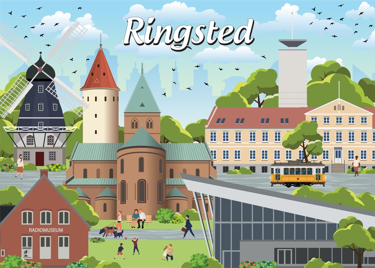 I vores puslespilsserie udfoldes Ringsteds kombination af historisk charme og nutidig dynamik, med brikker, der sammen skaber et billede af byens kulturelle rigdom. Inde i æsken finder du en kompakt plakat, der viser puslespillets design, hvilket kan være en hjælp, når du samler brikkerne.