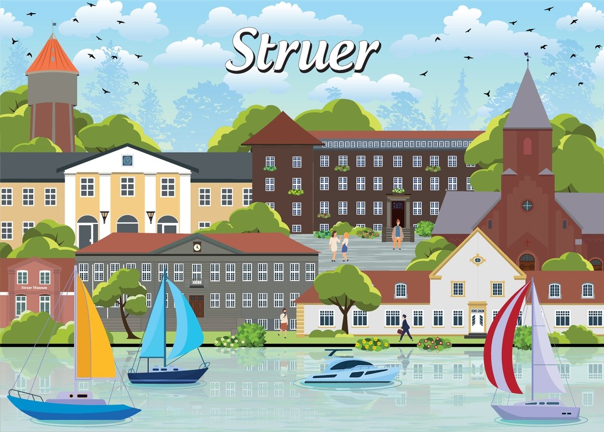 I vores puslespilsserie skildres Struers unikke sammensmeltning af lyd, kultur og natur, med brikker, der sammen danner et billede af denne dynamiske by. Inde i æsken finder du en kompakt plakat, der viser puslespillets design, hvilket kan være en hjælp, når du samler brikkerne.