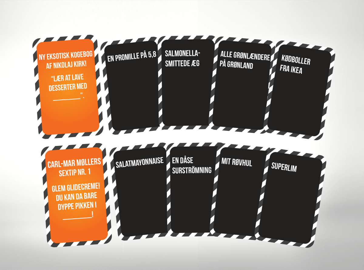 Kortene blandes, læses op og dommeren kårer det sjoveste.