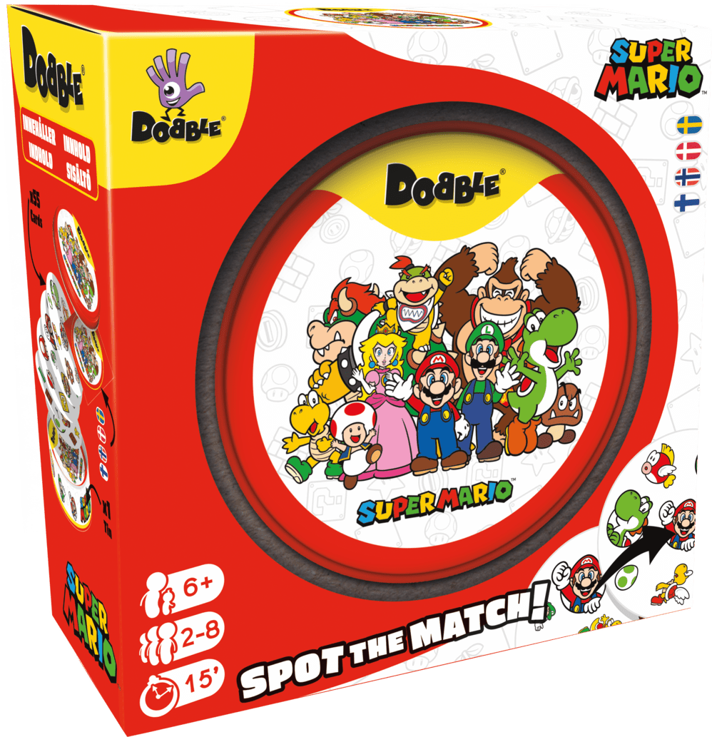 Tag en pause fra skærmene og saml venner og familie til en omgang Dobble: Super Mario – det ultimative spil til at teste din opmærksomhed og reaktionshastighed, alt sammen mens du genoplever magien fra Super Mario's verden!