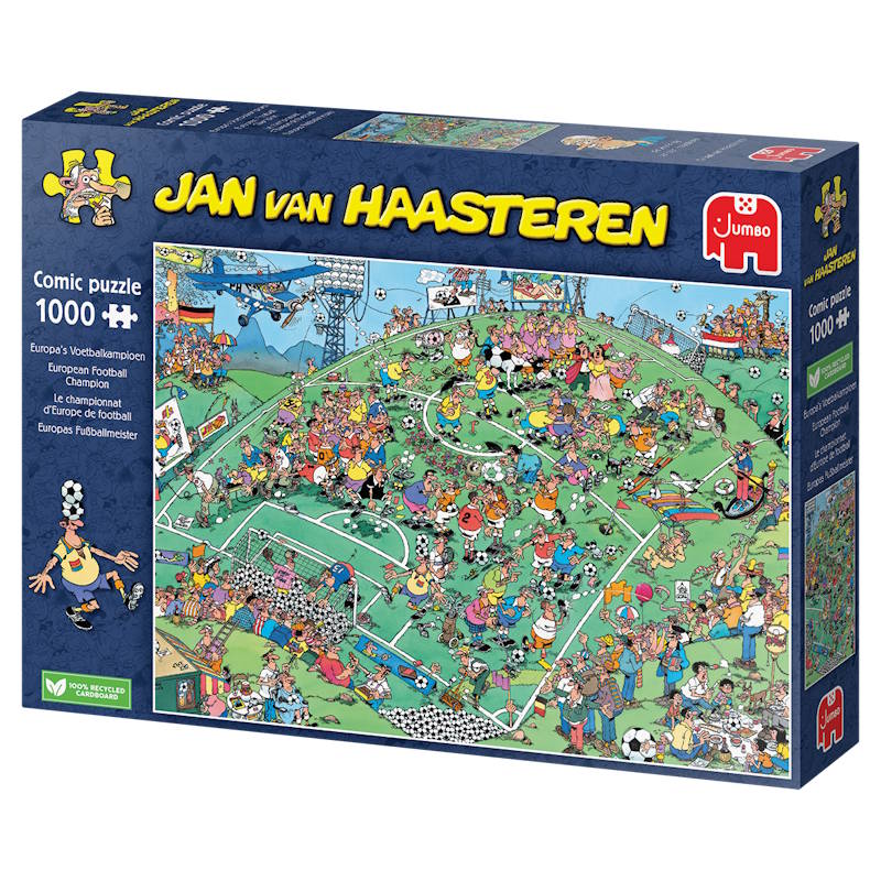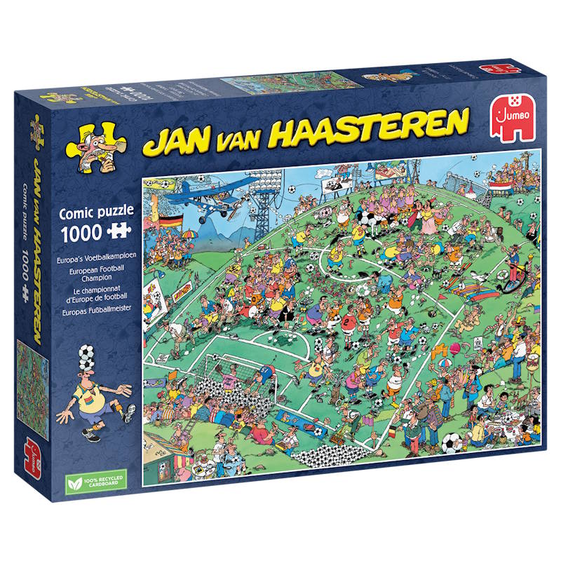 Oplev den intense fodboldstemning med dette 1.000-brikkers puslespil fra Jan van Haasteren-serien! Stadion er fyldt til bristepunktet med festlige fans, og spændingen er på sit højeste, mens holdene gør sig klar til kamp. Men i klassisk Jan van Haasteren-stil er der masser af skøre situationer, humor og overraskelser, som gør dette puslespil til en sand fornøjelse.