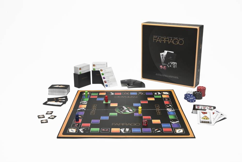Farrago er en blanding af mange gode ideer. Hvis du skal vinde skal du både kunne svare på spørgsmål og satse jetoner, samt være heldig. For at vinde skal du først forbi de fire kasioner, i Las Vegas, Atlantiv City, Monte Carlo og Macau. Herefter skal du lande på spillepladens midter felt, hvor hvis du har flest penge får stillet vinder spørgsmålet.