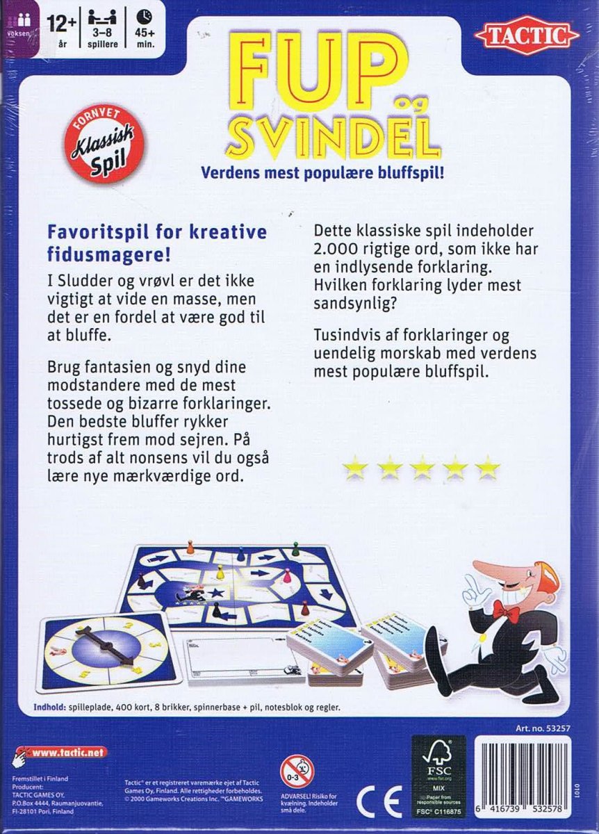Brug fantasien og snyd dine modstandere med demest tossede og bizarre forklaringer. Den bedste bluffer rykker hurtigst frem mod sejren. På trods af alt nonsens vil du også lære nye mærkværdighede ord.