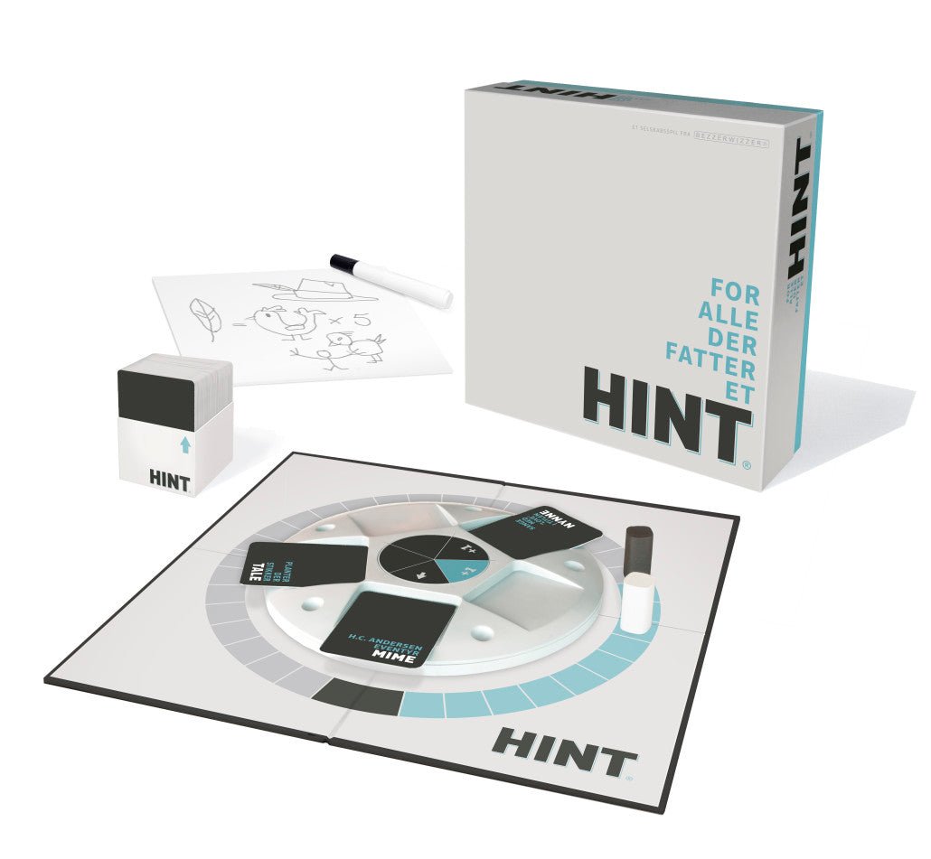 Der er garanti for et godt grin når du inviterer selskabet til at spille Hint. Du skal synge, mime, tegne og tale for at få dine medspillere til at fange dine hints. På bordet kan du se tre kategorier. Når du har valgt en kategori ved du hvordan du skal få dine medspillere til at gætte dine ord. På bagsiden af hvert kort står der 6 ord. Din opgave er på 90 sekunder at levere hints nok til at dine medspiller kan gætte de 5 ord, der giver pluspoints - og undgå det forbudte ord, der giver minuspoint. Du er hurtigt igang med spillet, der er bygget op så du lærer reglerne undervej. Hint Hvid er det første spil i Hint-serien. Efterfølgeren Hint Rødudkom i 2017.