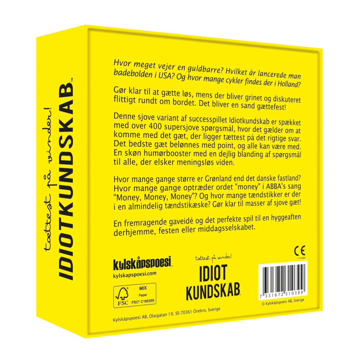 Idiotkundskab – Tættest på vinder er et spil, der samler folk om bordet og skaber latter, overraskelser og vilde diskussioner. Det er quizspillet, hvor alle kan vinde – også dem, der normalt aldrig gør det.