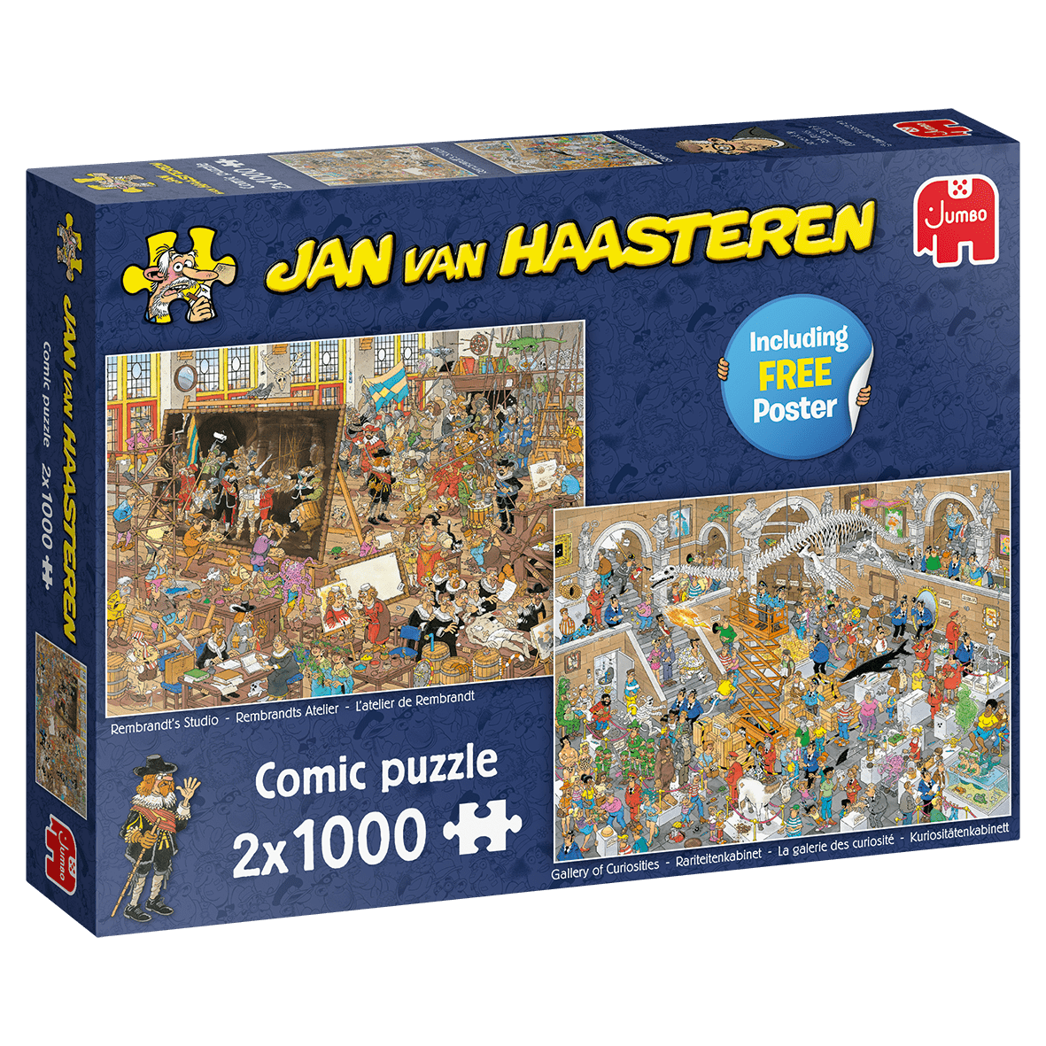 Jan van Haasteren puslespil af Rembrandts galleri og Naturhistorisk Museum.