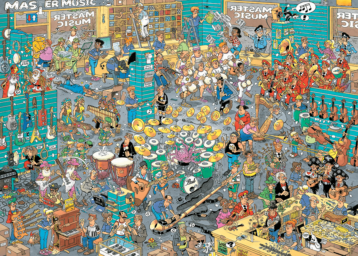 Jumbo puslespil med motiv af Jan Van Haasteren.