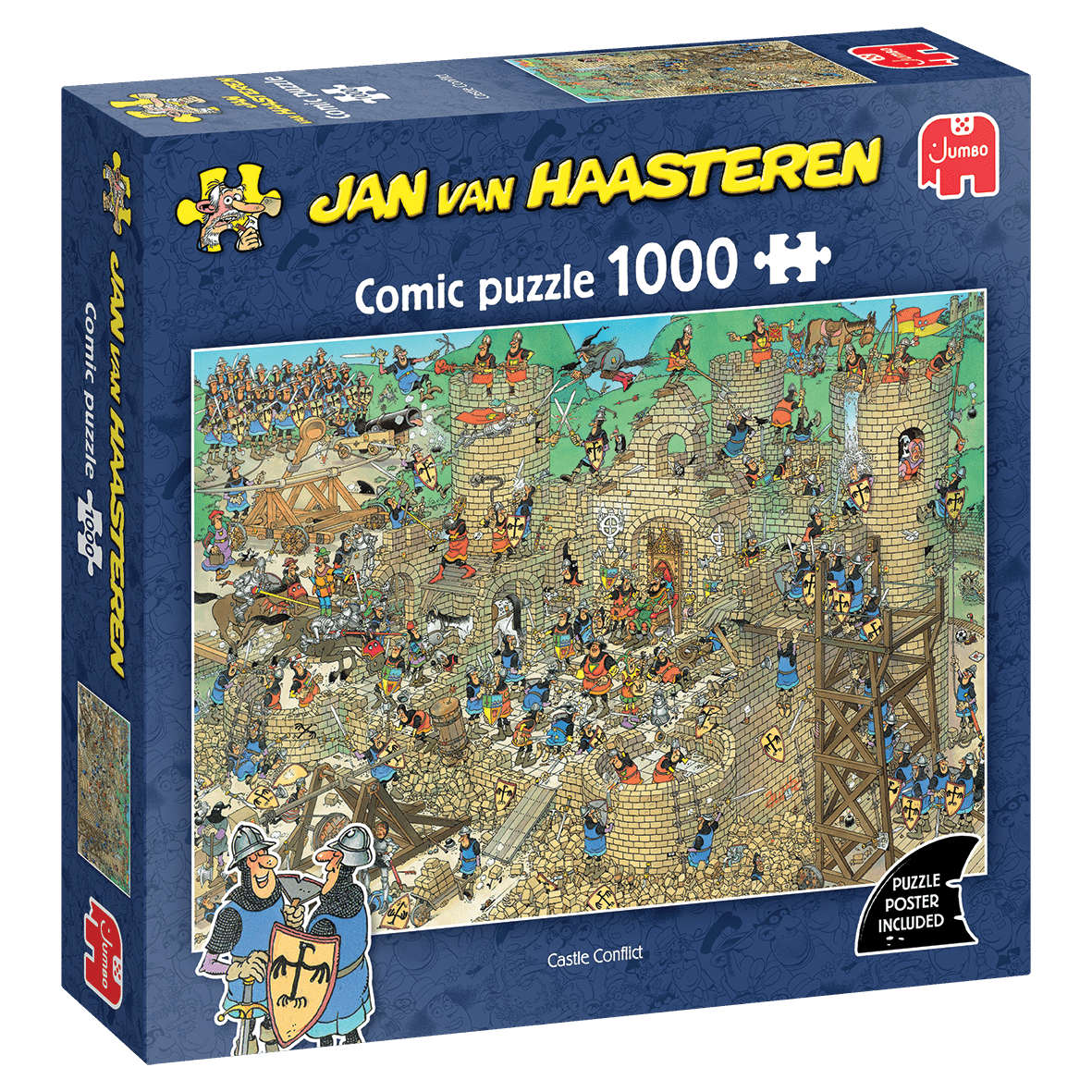 Problemer på borgen er tegnet af den hollandske kunstner Jan van Haasteren, kendt og elsket for sine livlige og komiske illustrationer fyldt med karakterer, kaos og skjulte overraskelser. Dette puslespil er et genoptryk af et tidligere udgivet motiv, der stadig begejstrer fans verden over.