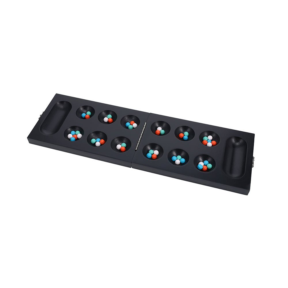 Kalaha i træ er en elegant og moderne udgave af et af verdens ældste strategispil. Spillet leveres i en flot gaveæske med grafisk design og indeholder et sammenklappeligt spillebræt i træ samt farvede spillesten.