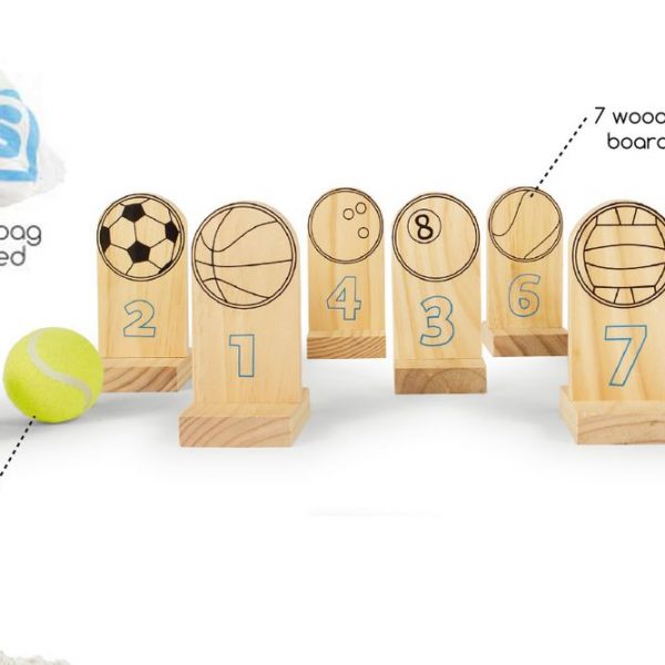 Før spillet starter opsættes træsøjlerne i den afstand, som passer til den sværhedsgrad I ønsker. Hver søjle har angivet et nummer, som viser, hvor mange point det giver at vælte den.