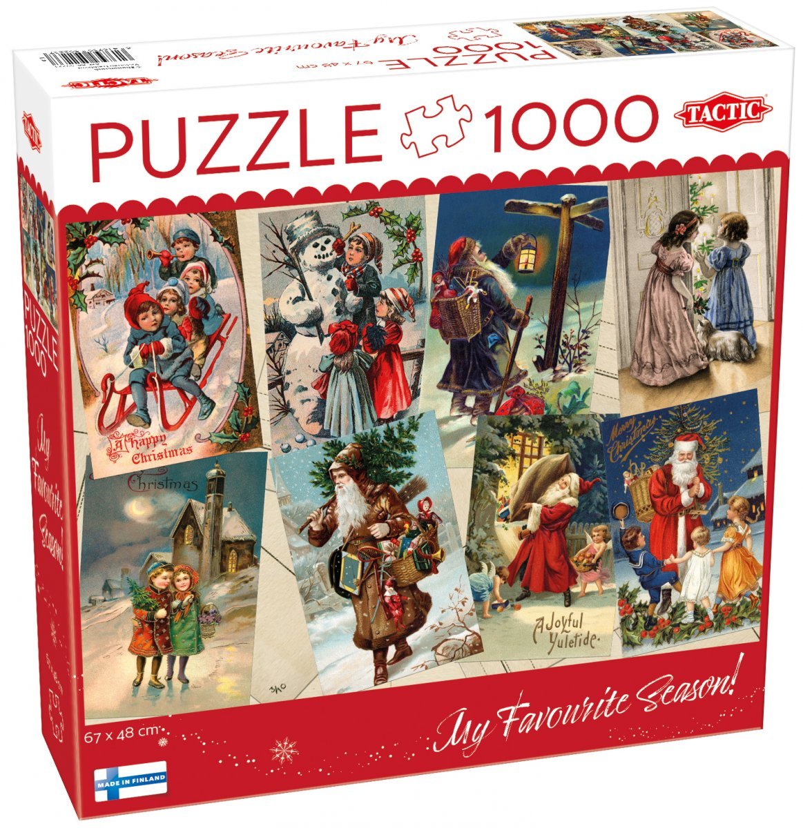 Dette puslespil samler nostalgiske julekortmotiver i ét charmerende collage-design. Klassiske julefigurer, snemænd, juletræer og hyggelige vinterlandskaber bringer barndommens julestemning tilbage.