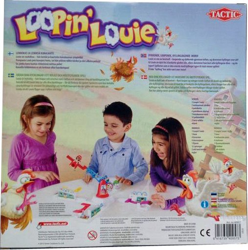 Spillet kan spilles helt ned til 4-års alderen og der kan være 2-4 spillere med til at spille. Loopin Louie er et forholdsvist hurtigt actionfyldt brætspil, som kun tager ganske kort tid at spille. Et spil tager typisk 20 minutter, og der er højt humør mens Louie suser rundt. Spillet er udviklet af TACTIC, og kan fint spilles alene af små børn, men vær opmærksom på at det indeholder smådele, som de allermindste kan få galt i halsen.