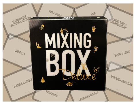 MIXING BOX DELUXE er et underholdende selskabsspil, hvor samarbejde, holdånd og talegaver er godt at have når der skal spilles.