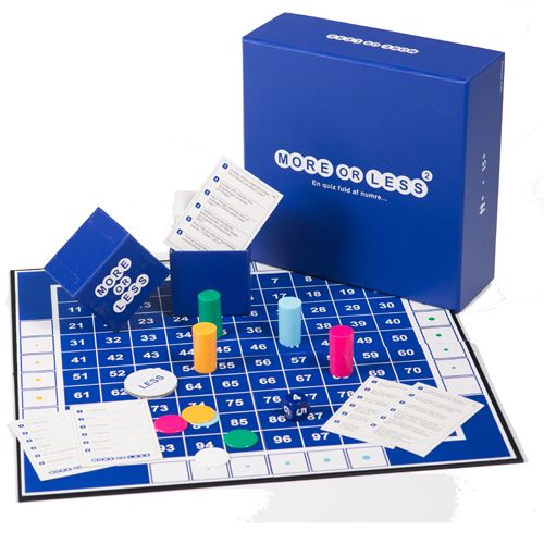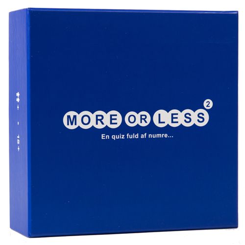 Hvis du er træt af quizspil, som dyster på paratviden så er More or Less serien dine foretrukne quizspil for fremtiden. More or Less 2 er nemlig et brætspil, som handler om at kunne sjusse sig frem til det rigtige svar ud fra sin sunde fornuft. Forløberen til More or Less 2 vandt Guldbrikken for årets selskabsspil i år 2013, fordi det er et stærkt inkluderende quizspil i modsætning til nogle af de senere års succeser. Konceptet i More or Less 2 er det samme som i forgængeren. En spiller læser et spørgsmål fra et af spørgsmålskortene og beslutter sig for om de andre spillere skal gætte ”More” eller ”Less”. Når spilleren vælger ”More”, så skal medspillerne gætte det præcise antal eller derover. På samme måde skal medspillerne gætte det præcise antal eller derunder, når oplæseren vælger ”Less”. Det nye i More or Less 2 er, at spiludviklerne har indført en spilleplade, hvor spillerne i stedet for at skrive et tal ned på et stykke papir, skal stille deres brik på det tal de ønsker at gætte på. Dette giver spillet et strategisk lag, fordi man kan holde øje med modstandernes valg og sjusse sig ind på sit svar ud fra de andres svar. Et spørgsmål kunne f.eks. være: ”Hvor mange danskere bar navnet Morten Olsen ved indgangen til år 2013?” Den spiller, som kommer tættest på det rigtige svar vinder runden og får et point. Man bestemmer selv, hvor langt spillet er og vinderen er den, som har flest point, når spillet er slut. More or Less 2 fungerer rigtig godt som et selskabsspil, fordi spilmekanikken skaber en masse snak, når holdene skal sjusse sig frem til det rigtige svar. Spillet udstiller også glimrende generationsforskellene, når børnene tror, at der kun findes én Morten Olsen i Danmark, hvorimod de ældre har idé om, at der er lidt flere mennesker i Danmark, som hedder Morten Olsen, end den forhenværende danske landstræner.