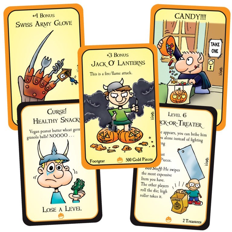 Denne udgave inkluderer fire kort fra Munchkin Halloween-pakken plus Candy Apple promo-kortet – i alt 30 kort!