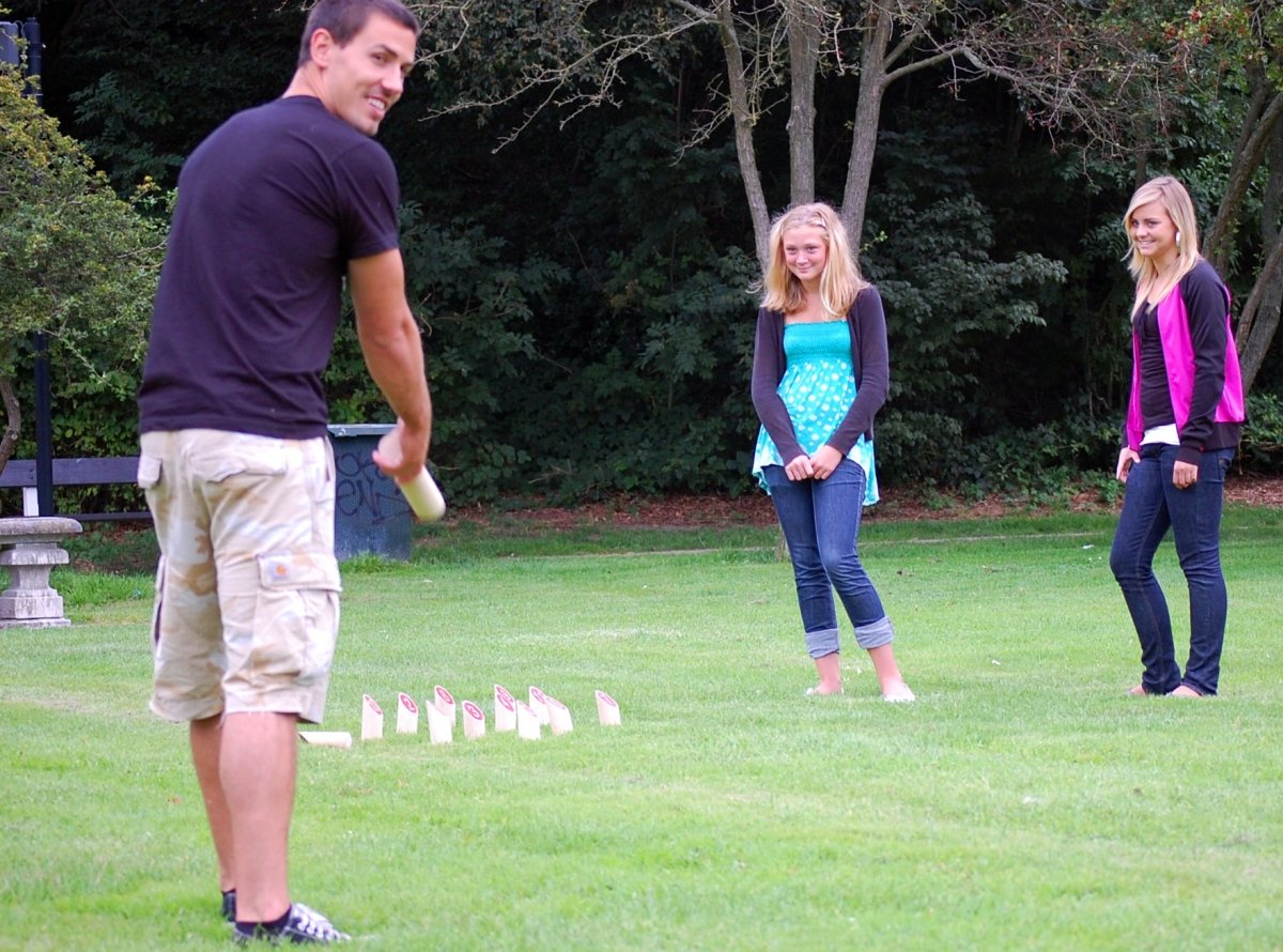 Nummer Kubb forbinder både små og store til leg og lidt matematik i haven. Alle kæmper mod hinanden, og første mand der rammer præcis 50 point vinder spillet.