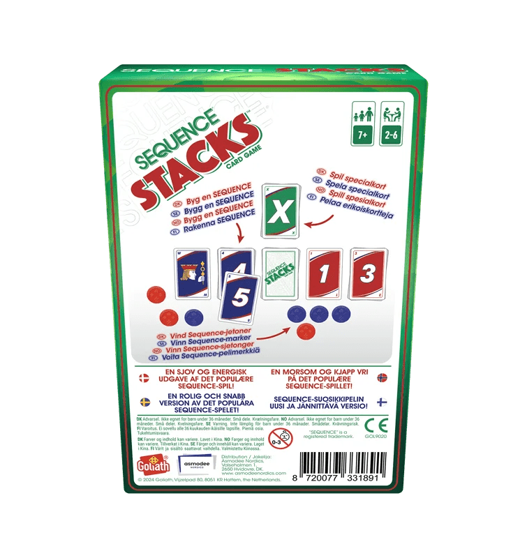 Sequence Stacks er et hurtigt, taktisk familiespil, hvor strategi og held går hånd i hånd. Spillet kombinerer det bedste fra klassiske kortspil og brætspil og skaber en spændende spiloplevelse med høj puls og masser af grin.