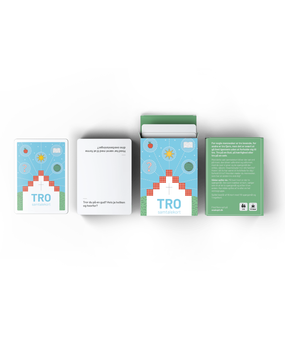 Med dette sæt samtalekort bliver der sat ord på troen, den bliver udfordret og udformet, med de svar vi giver og de spørgsmål der stilles, såsom: Hvad betyder tro i din familie? Hvem i dit liv har været et forbillede for dig i forhold til tro? Hvordan møder du mennesker, som har en anden tro end dig?