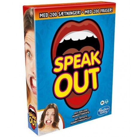 Speak out, verdensberømt for at være hylende sjovt, set på TV og brugt af diverse kendte, bringer virkelig den hyggelige og ultra sjove stemning til bordet. Man kan ikke undgå at falde sammen i grin, når man ser medspillerne putte mundstykket i munden. Noget der alligevel kun kan blive værre, i det de skal læse sætninger højt fra tilhørende kort. En normaltvis nem opgave bliver nu noget af det sværeste du har prøvet længe, i det du vrider og drejer ordene i forsøg på at få dem ud. Kan dit hold gætte flest kort eller falder i til gulvet af ustyrlige grin først?