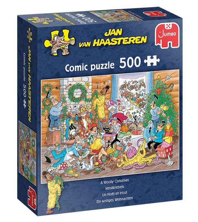 Dette puslespil fra Jan van Haasteren-serien bringer julestemningen til live med sit komiske og detaljerede motiv, hvor både mennesker, husdyr og tilsyneladende også spøgelser får bløde pakker i julegave! Med en størrelse på 49 x 35 cm og brikker på ca. 3,4 cm², er det både overskueligt og detaljerigt. Brikkerne er lidt større end standard, hvilket gør det nemmere at samle – perfekt til dem, der sætter pris på sjov og finurlighed i deres puslespilsoplevelse.