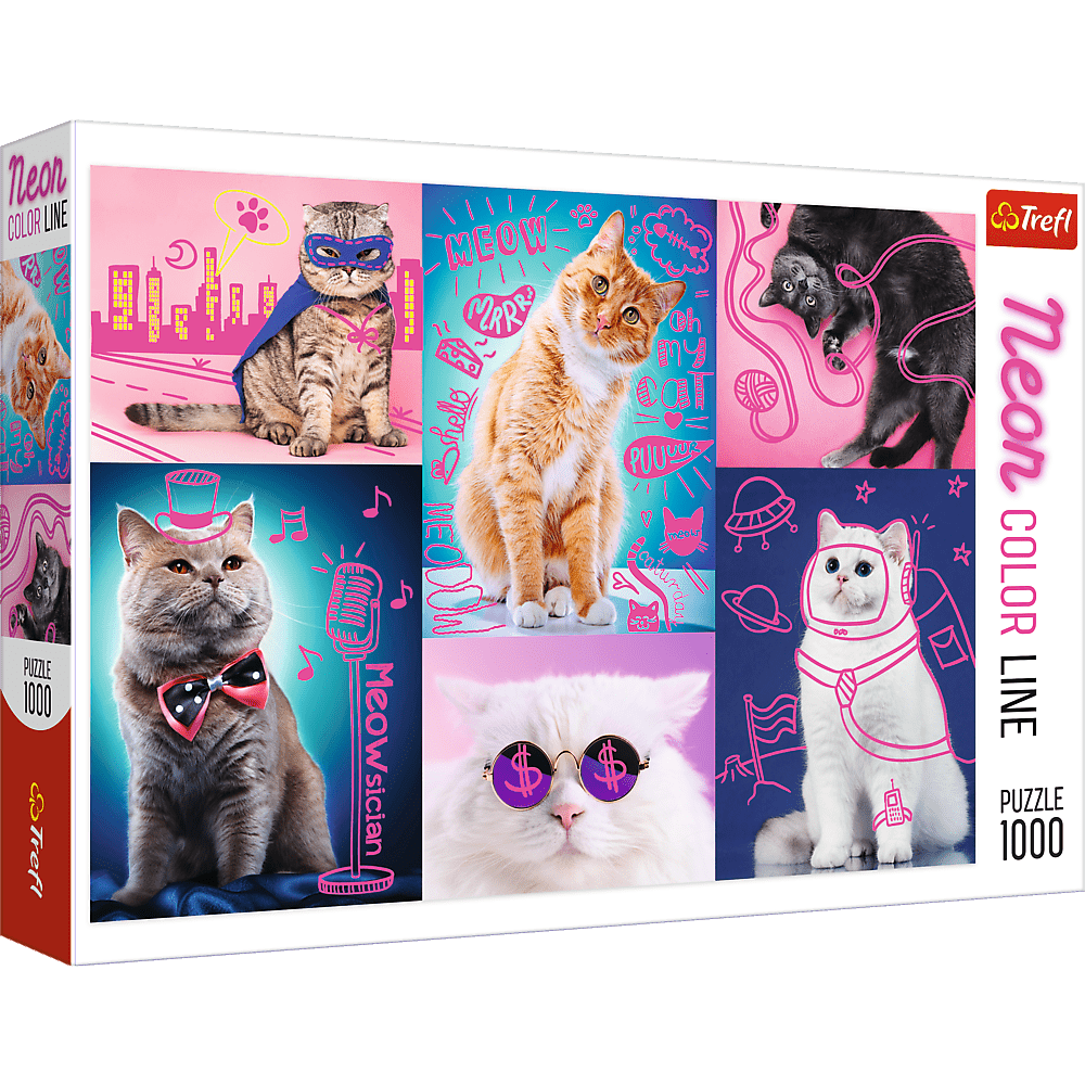 Trefl puslespil med motiv af Katte. Neon Color Line serien hvor der også er tegnet med neon.