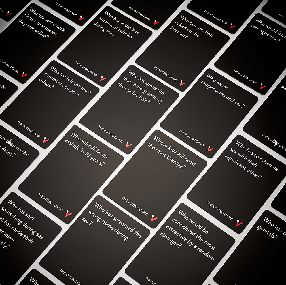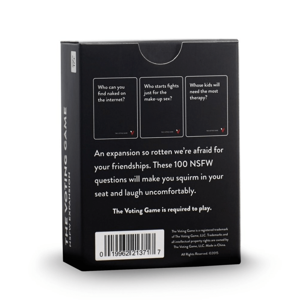 "The Voting Game NSFW Expansion" er en udvidelse til det populære festspil "The Voting Game".
