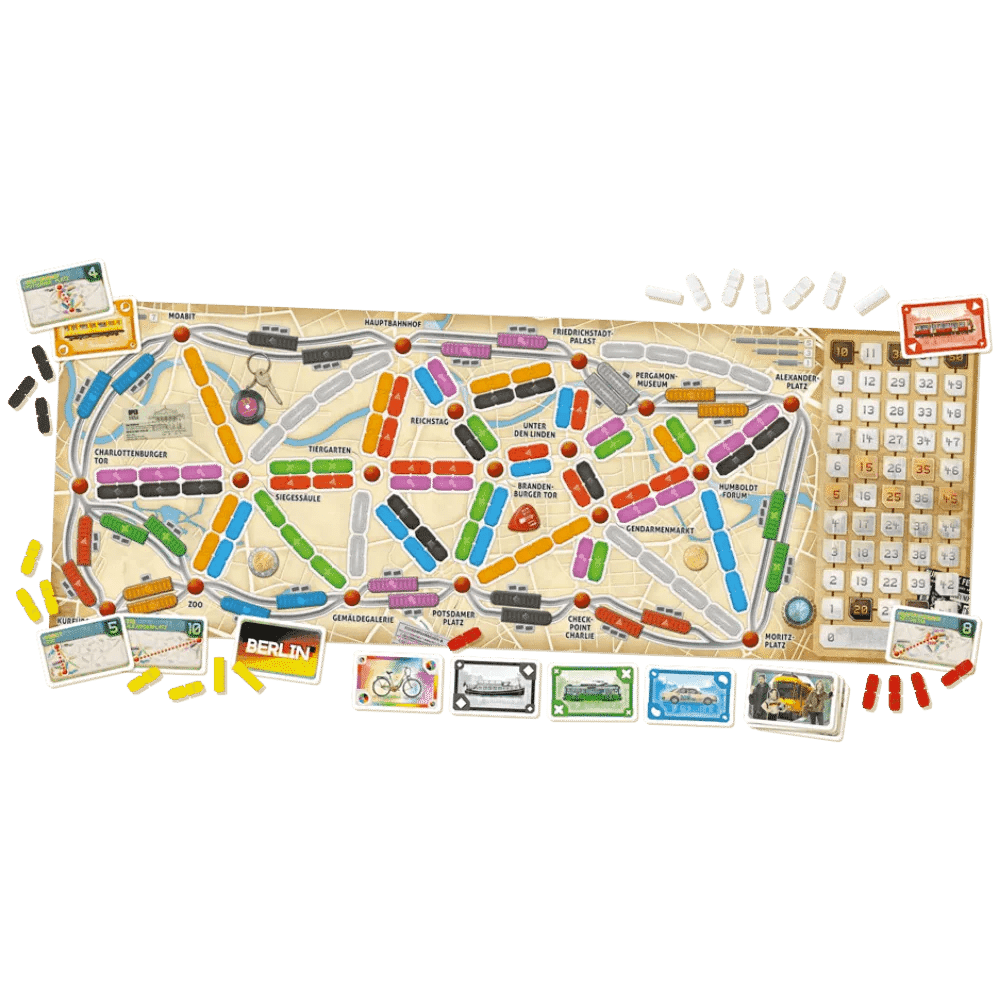 I dette tempofyldte Ticket to Ride-spil, konkurrerer spillerne om at besøge byens mest ikoniske steder. Den vindende spiller vil benytte Berlins sporvogne og for første gang bevæge sig under byens gader for at inkorporere et metrosystem i deres ruter.