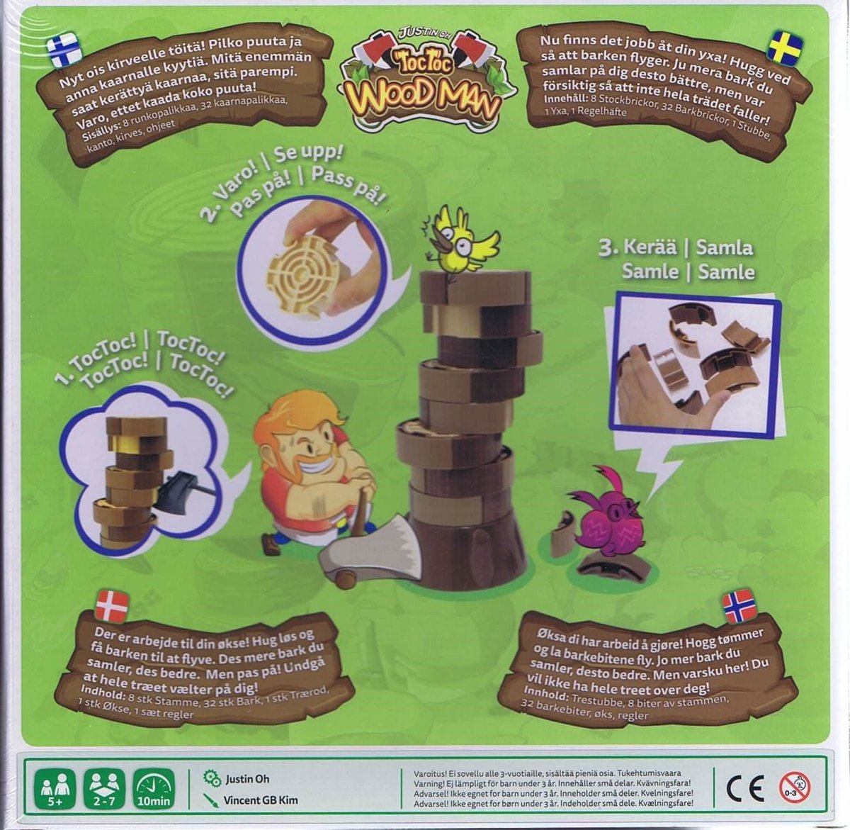 Toc Toc Woodman handler om at være den bedste skovhugger. Der skal snilde og teknik til, for at kunne bruge øksen på en måde, hvor alt barken bliver slået af træet uden at træstammen vælter. Kæmp mod dine venner og find ud af, hvem der er bedst til at give træstammen og dens bark et præciseret hug. Jo mere præcist, du kan hugge til barken, jo større chance har du for at vinde.