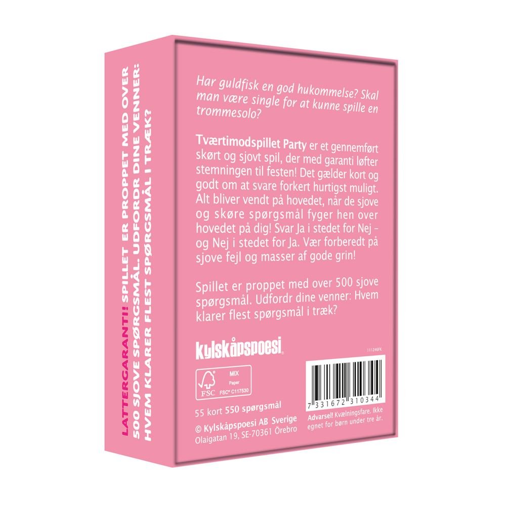 Spillet byder på over 500 spørgsmål og kan spilles alle mod alle eller i hold. Perfekt til enhver fest, hyggeaften eller som et sjovt indslag med venner og familie. Hvem kan holde hovedet koldt og klare flest spørgsmål i træk? Tværtimodspillet bliver hurtigt et hit, uanset hvor det spilles!