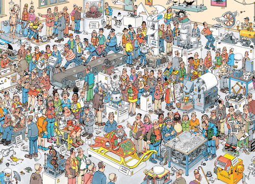 - Illustrator: Jan van Haasteren, kendt for sit farverige og detaljerige univers.