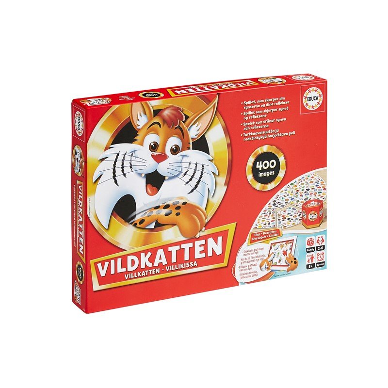 Denne udgave af Vildkatten består blandt andet af hele 401 billedkort. Du får derfor mange flere ting at lede efter på spillebrættet. Spillebrættet er i 9 dele, som kan sættes sammen forskelligt fra spil til spil. På den måde får du lov til at spille et nærmest nyt spil hver gang. Man spiller ved at lede efter et motiv på spillepladen. Det er sjovt for hele familien at lede efter motiver på spillepladen. Det handler selvfølgelig om at være den hurtigste til at få øje på det billede, man leder efter.