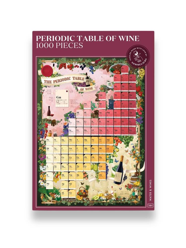 "Man drikker ikke kun vinen, man dufter til den, iagttager den, smager på den, nipser til den... og taler om den." – Edward VII (1841-1910). Dette er det ultimative puslespil for vinelskere og den perfekte ledsager til din næste vinsmagning. Puslespillet guider dig gennem nogle af verdens mest populære druesorter, organiseret efter krop og syre i et håndillustreret periodisk system. For hver drue beskrives dens vigtige egenskaber, oprindelse og smagsnoter, så du kan lære på en sjov og visuel måde. Puslespilæsken indeholder også en række værktøjer for vinelskere, som du kan bruge igen og igen: en guide til vinens aromaer, en guide til vinglas, en trin-for-trin-guide til vinprovning og en farvekort til vin, som kan anvendes under smagninger. Dette puslespil vil løfte din vinoplevelse til nye højder og glæde både begyndere og finsmagere. Illustreret af Mark Belan.