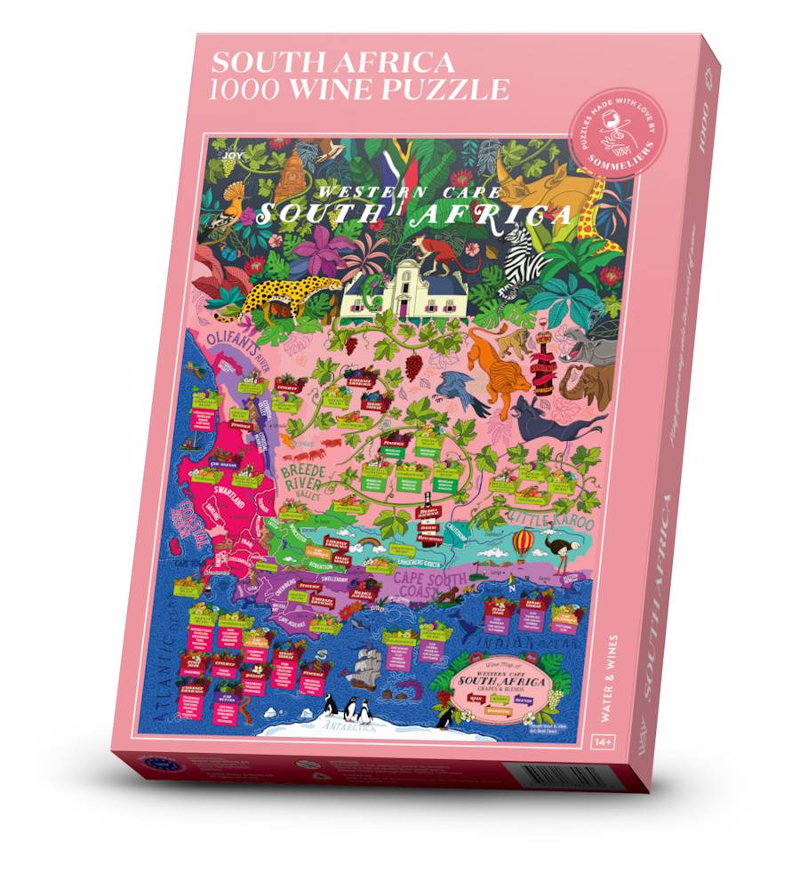 "Træd forsigtigt, ånd roligt, grin hysterisk." – Nelson Mandela. Dyk ned i en livlig hyldest til de sydafrikanske vine med dette kunstfærdigt illustrerede puslespil. Fra Walker Bays kystcharme til Stellenboschs bjergrige terræn fanger dette puslespil essensen af den Vestlige Kapprovins, hvor landets vigtigste vinproducerende regioner er koncentreret. Puslespillet er omhyggeligt sammensat af sommelierer og indeholder drueprofiler samt masser af tips til madparring, så du kan udforske smagene og egenskaberne ved lokale druesorter. Lær mere om hver region og distrikt, mens du samler puslespillet, og få en dybere forståelse for Sydafrikas rige vinkultur.