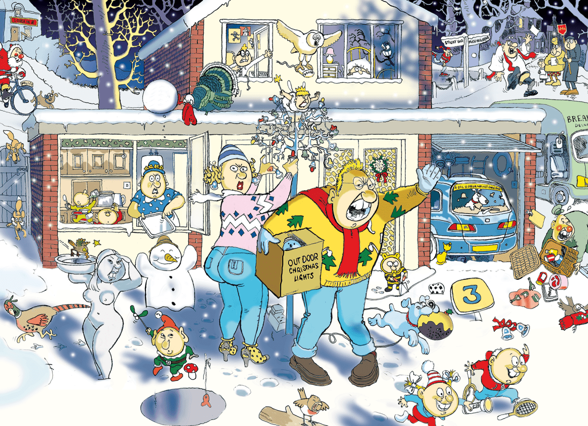 Motivet er et genoptryk af et tidligere udgivet puslespil og indeholder alt, hvad man forbinder med Wasgij-serien – farverig galskab, morsomme figurer og masser af festlig julestemning.